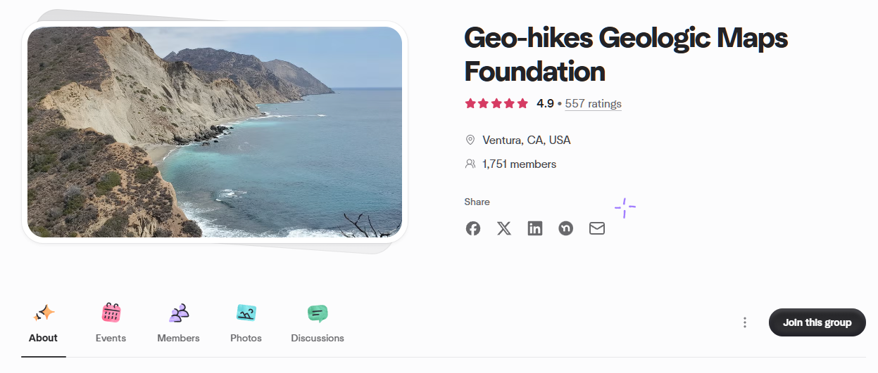 Visit the Meetup page for the last few years for a quick appreciation, with photos, of Geo-hikes events, the TDAVISGEO's Newsletter at substack.com, and Youtube videos: